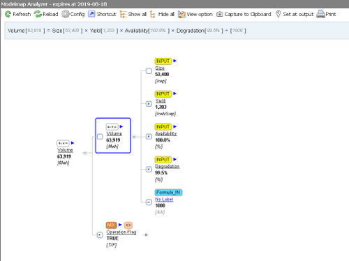 Modelmap Analyzer の中にも数式バーがあり、樹形図の上部に表示されています。選択項目が変わるたびに自動で更新され、数式内の数値をクリックすることで、対象の要素へジャンプすることもできます。
